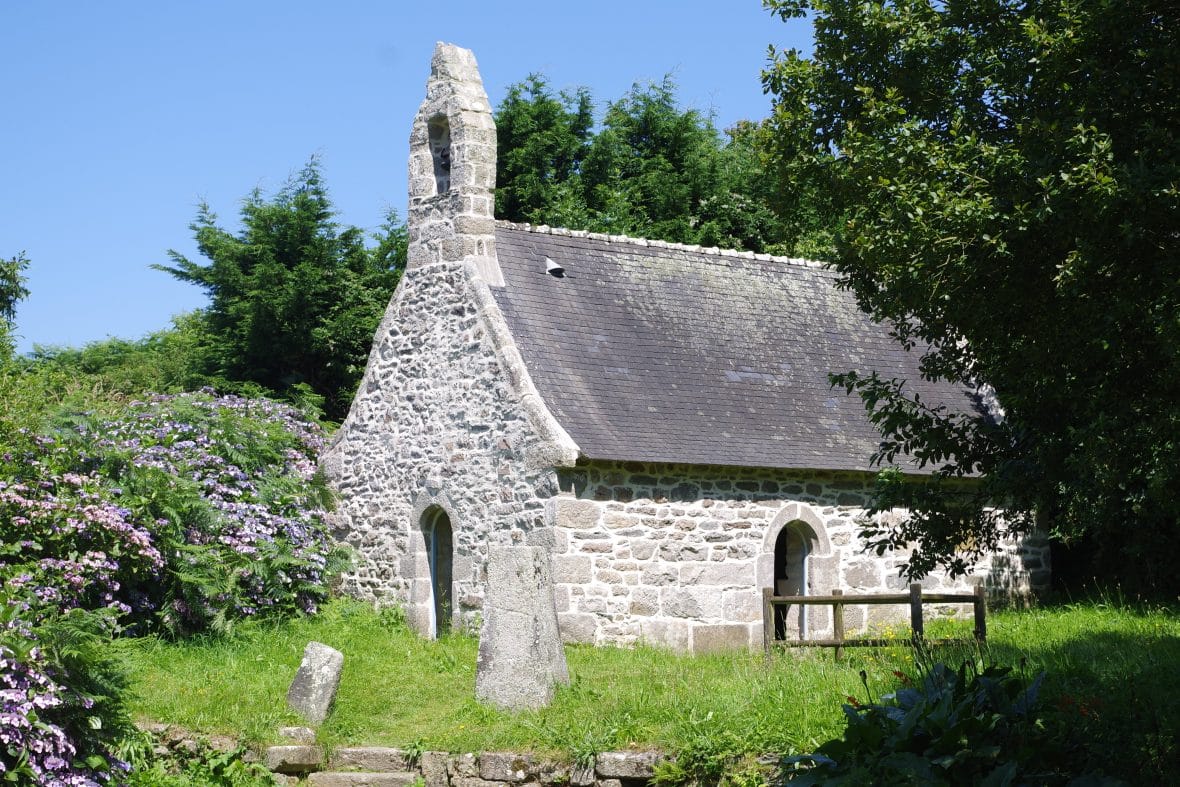 À Tréménec’h-Vihan. Édifice de plan rectangulaire, reconstruit en 1833, à l’exception du clocher du XVIIe siècle.